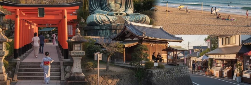 Ancienne capitale du Japon médiéval, Kamakura fascine par son patrimoine spirituel exceptionnel et sa situation privilégiée au bord de l’océan Pacifique. Cette ville côtière de la préfecture de Kanagawa, située à seulement 50 kilomètres au sud de Tokyo, offre une escapade culturelle unique mêlant histoire millénaire et art de vivre balnéaire japonais. Ses 65 temples bouddhistes et 19 sanctuaires shintoïstes témoignent de son rôle central dans l’établissement du premier shogunat japonais au XIIe siècle.