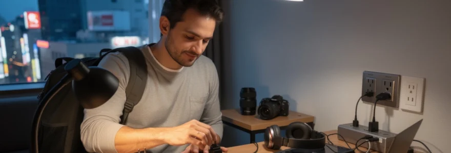L’avantage principal de l’adaptateur universel est sa polyvalence : un seul dispositif couvre la quasi-totalité des destinations, y compris le Japon et l’Amérique du Nord qui partagent le format de prise de type A/B. Vous pouvez ainsi connecter sans difficulté vos chargeurs de téléphone, d’ordinateur portable, d’appareil photo ou de brosse à dents électrique. Pour optimiser votre installation, une astuce consiste à emporter en plus une petite multiprise française (sans terre si possible), afin de brancher plusieurs appareils simultanément sur un seul adaptateur. Cette configuration est particulièrement utile dans les chambres d’hôtel qui ne disposent parfois que d’une ou deux prises murales facilement accessibles.